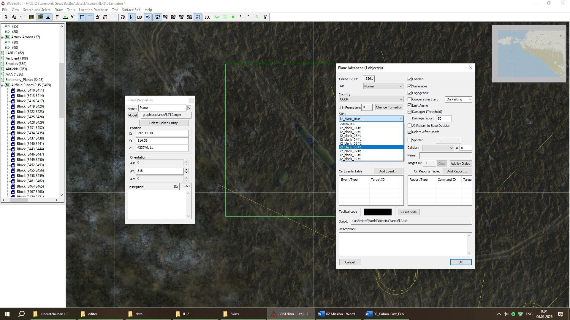 SWORD Posted January 6 Author Posted January 6 (edited) Попробовал поменять стационарным Ли-2 камуфляжи с летних на зимние, но так и не смог разобраться, где посмотреть скины il_2_blank_01#1 (см. рис. 1) и т.д. и как, собственно, выглядят эти скины, есть ли среди них зимние. В полном редакторе при нажатии на строчку этих скинов ничего не меняется. Может быть, в полном редакторе вообще нет зимних скинов, поскольку используется карта Кубань-осень, и только мод превращает её в зимнюю? Прошу знатоков ответить. 04.01.2026 в 19:42, CzechTexan сказал: Change Front Lines" Open a mission in the Mission Editor - on the sidebar find Front Lines. Select all the "ico" using the SHIFT KEY - all should be highlighted when selected. Look on the MAP and see the highlighted icons... change front lines to your desire. Next, you need to copy and paste... (with all icons highlighted) Put your MOUSE on one front line "icon" , right click with MOUSE, and copy. YOU have successfully copied the whole front line. Next, open a new mission in order to copy/paste this front line.... in the new mission sidebar, delete the OLD FRONT LINE. Go to the Map and right click with MOUSE, and paste. the new front line should be added. Сделал всё, как Вы сказали, но значки линии фронта почему-то не появились на карте, и редактировать их невозможно (см. рис. 2). Может быть, я делаю что-то не так? P.S. Да и выглядят стационарные Ли-2 как-то странно, плоскости не прорисованы (см. рис.1). Edited January 6 by SWORD Quote