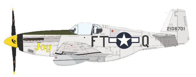 bbow01 Posted January 23 Author Posted January 23 Here's the bird that I'm trying to replicate. I understand that she "had been around the block" a few times. She was originally "Z for Zita" and that name stayed on the right side. I found out that when Jack (my dad) was assigned to it, he had "Joy" painted on the left side. Both names were still on the A/C when it went down. There are no photographs of the left side of the A/C and I've only found two that show the "Z for Zita" side, so I have no idea of how "Joy" was painted. I have to use my imagination on that score. His Missing Aircrew Report stated that it was a Block 10 build, but nobody that I know will be able to tell the difference between Blocks 5 and 10, so no sweat there. I got the original Corel Draw source files from the 354th FG Association and I edited them with what you see as the resulting A/C that Jack was flying (SN 2106701) the day he was shot down. Quote