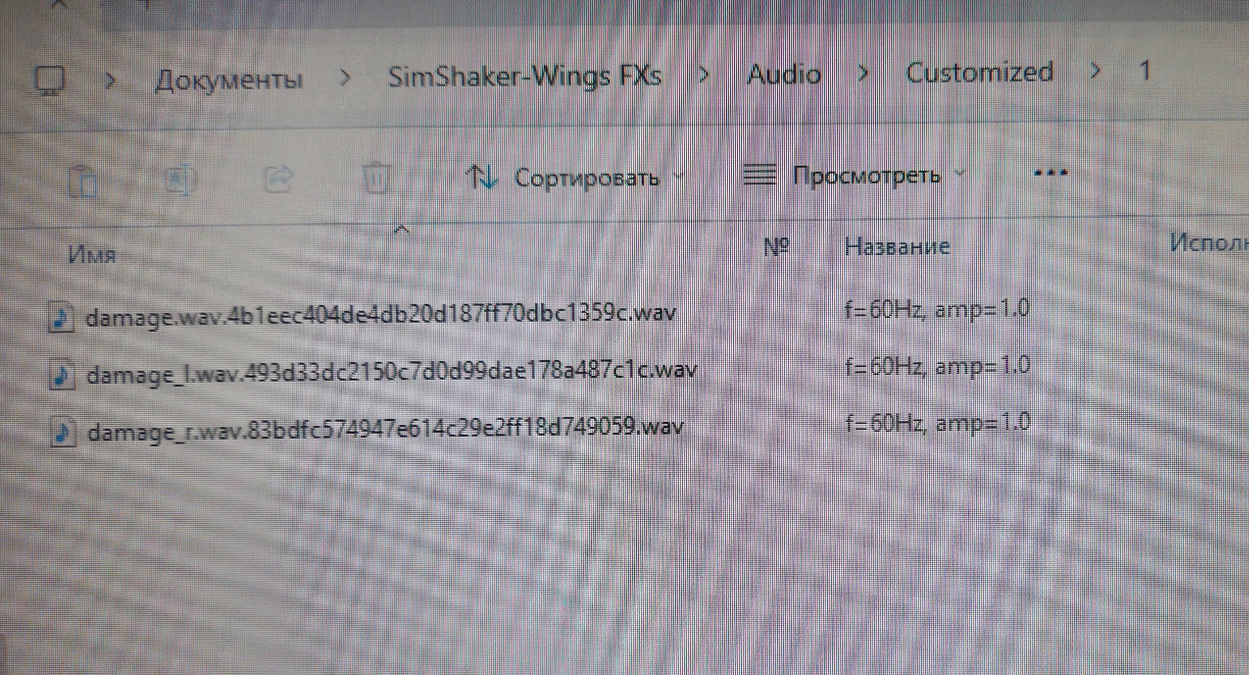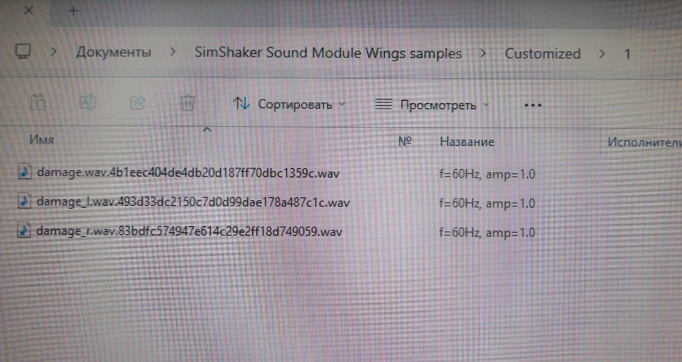 Andre Posted January 15 Author Posted January 15 47 minutes ago, Stalinskiy_SOKOL said: У меня изменения весьма заметные. Но если файлы поместили не туда, то они работать не будут. А если поместили туда, то можно это проверить - в лог-боксе Wings (или в Sound Module, смотря что используется) должны появится 3 записи при запуске This is SimShaker-Wings main window 12:50:58.935 Customized FX .WAV file found: damage.wav 12:50:58.936 Customized FX .WAV file found: damage_l.wav 12:50:58.937 Customized FX .WAV file found: damage_r.wav - У меня при запуске в лог-боксе таких записей не появляется. Прикладываю фото куда поместил файлы. - А еще хотел спросить что за функция Enable Compressor и нужно ли её активировать в Ил-2? А вот оно в чем дело... при скачивании файлов имена изменились. Видимо это особенность движка форума. Конечно, в таком виде они никакого влияния не оказывают. Проще всего сейчас вам видимо отсечь всю эту добавочную абракадабра.wav, так чтобы остались чистенькие имена файлов: damage.wav damage_l.wav damage_r.wav Функция Enable Compressor может быть полезна, если басс-шейкер начинает громыхать, будучи перегружен множественными эффектами. Compressor ограничивает сильные сигналы, но не трогает слабые. Активировать можно в любой игре. Quote