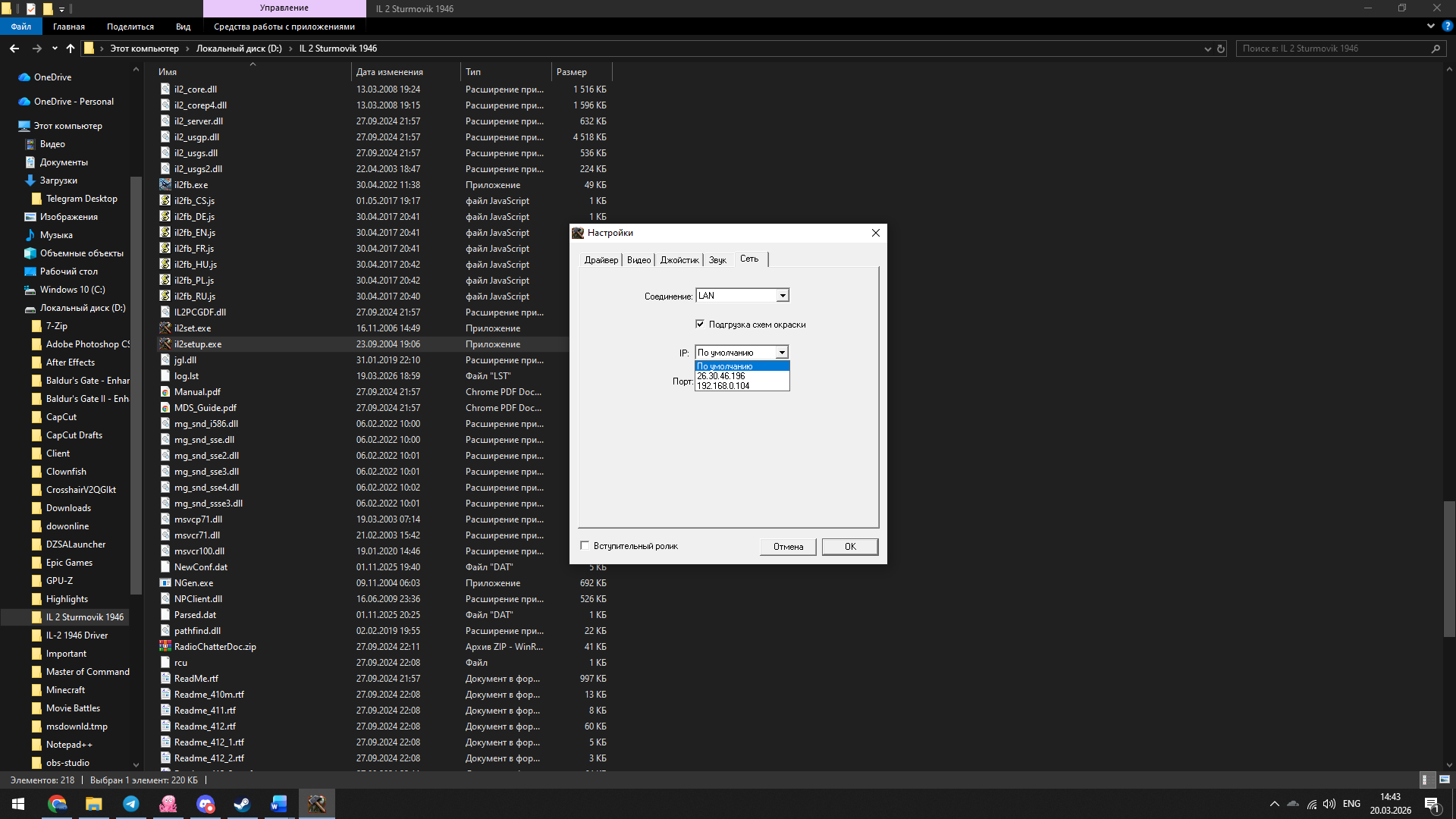 -41-Bes Posted March 20 Author Posted March 20 15 часов назад, Jet_F_76 сказал: Попробовал с другого компа, по wifi. Тоже самое, бесконечное ожидание подключения. Провайдер МТС. Попробуйте через ил-2 сет поиграться с айпи, повыбирайте разные, иногда такое бывает, что из-за вай-фая несколько айпи адресов и ил не может понять какой использовать. На скриншоте то, о чем я говорю.