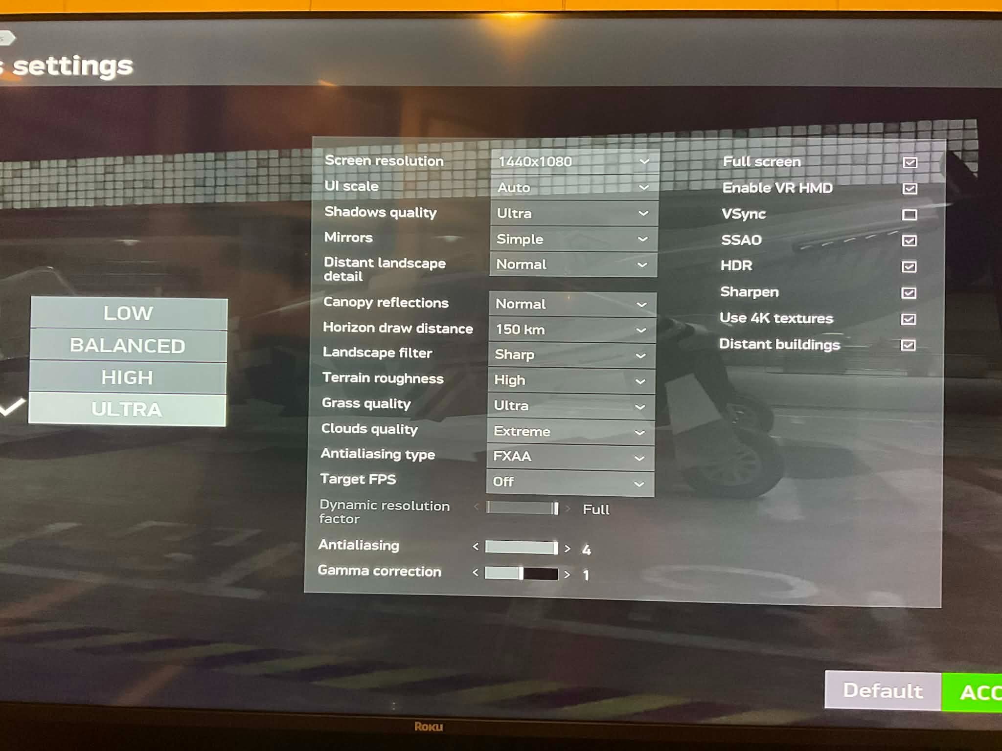 daiphan Posted March 29 Author Posted March 29 7 hours ago, BlitzPig_EL said: Set the resolution to the native resolution of your monitor. What monitor do you have? What is it's refresh rate? What size is it? The upper number is the frame rate, the lower is your field of view, which at 65 is zoomed in, which is what I asked you about before. Here are my graphics setting in game, I run a 5070 Ti, and an AMD 7800 X3D cpu. I consistently get 100 to 169fps in game with Vsync on to limit my FPS to the refresh rate of my monitor. With Vsync off I was seeing 180+ fps at times. Something is very off in your graphics settings. Keep at it, you can get this sorted out. I use 50 inch TV so what would the refresh rate be? Dai