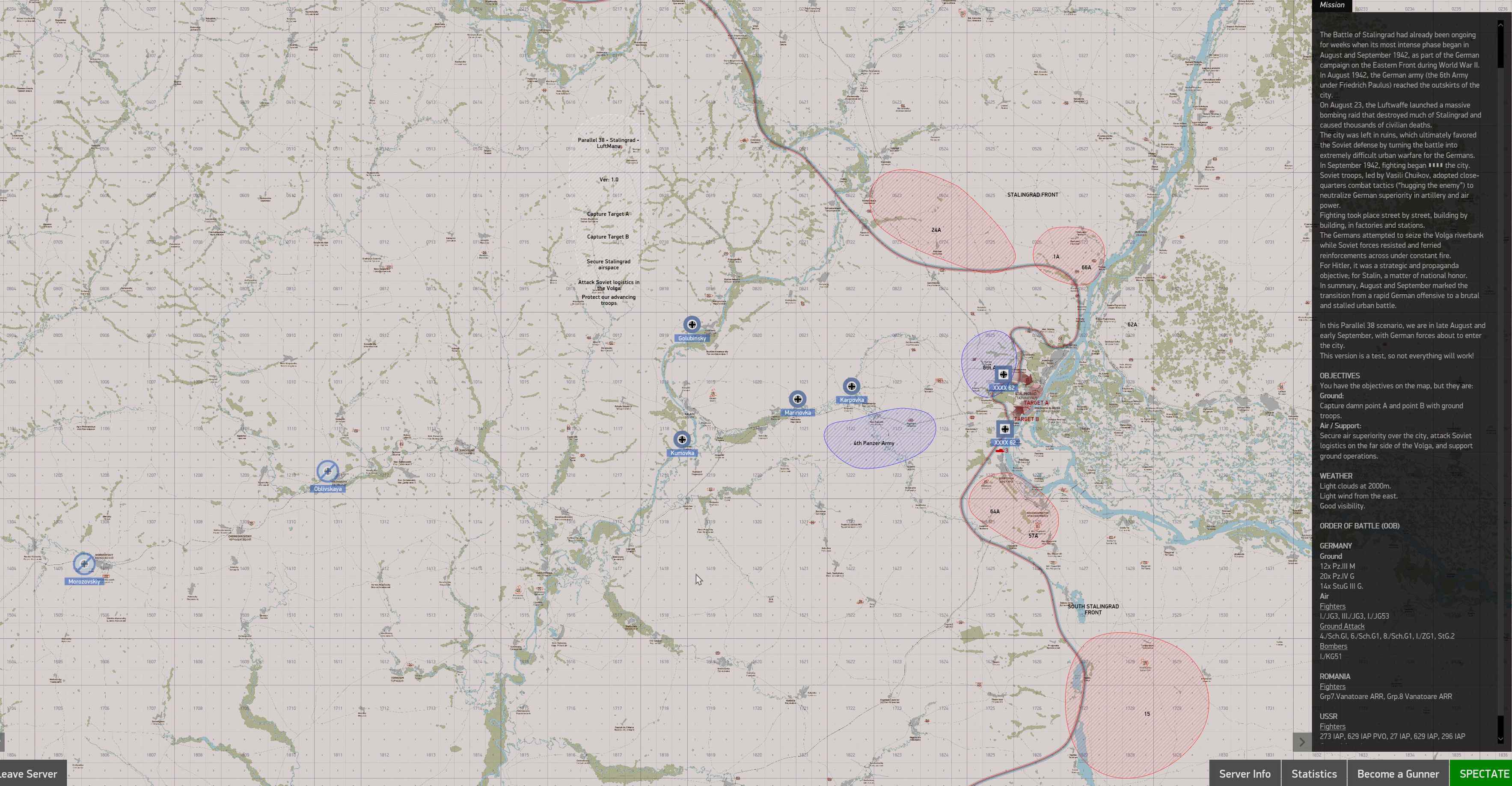 LuftManu Posted Saturday at 11:00 AM Posted Saturday at 11:00 AM Server Name: Parallel 38 – Persistent COOP PvE Campaign Password: corsair Discord: https://discord.gg/HMq2Vf8rKp Hello everyone! I’d like to introduce a personal project I’ve been developing over the past few months, now evolving into something bigger with the arrival of Korea. This project started as a beta PvE server for the Spanish community last year, and the feedback has been extremely positive. (And it surprisingly worked really well! honestly, I did not know things were going to work once I started working on this) While PvP is the most common approach in IL-2 Sturmovik, I believe there’s still a huge untapped potential for organized PvE gameplay and that’s exactly what this is about. I'll share some screenshots from the already working GB scenarios. At its core, this is not a competitive environment, but a recreation-focused experience. These are events designed to enjoy flying in diferent scenarios and with different aircraft, sometimes ommited as they are not useful in other areas. There are already excellent PvP servers out there offering intense and exciting gameplay ( Shootout to Apollo from CB, TAW or the Finnish server...they come to mind and big KUDOS for their work) but PvE remains a much less explored space. This is where this project comes in. I know there are some limitations, but we are here to make full use of what we have to have an enjoyable experience. Over time, I’ve had the chance to talk with many players, and a common idea keeps coming up: Some are simply looking for a more relaxed and immersive environment, a place where they can enjoy flying without the constant pressure of competition. Others are interested in experiencing historical scenarios as they unfold, focusing on authenticity and atmosphere rather than performance or results. And others just want to fly and enjoy every kind of scenario. And then there are those who have never really taken the step into multiplayer. For them, the usual PvP environment can feel overwhelming, and what they’re looking for is a more structured and approachable way to get started something that allows them to learn, participate, and enjoy the experience at their own pace. This is really importante as we prepare for the launch of a new generation of Il-2. These events aims to provide exactly that. The goal is to create something that feels like a natural evolution of the single-player experience. In many ways, you could think of it as: An extension of Career Mode into cooperative multiplayer A place where players can fly together, coordinate, and take part in a shared battlefield where players are just part of the equation, not the protagonists. And another important point is language: We will localize the missions into all the game's availible languages. This is really important to help people join in and understand what happens. Original thread: Hello everyone! The day has finally arrived! After 50 continuous hours of testing the beta version with some teammates—and achieving great success—Parallel 38 will have its first open test this coming weekend! Start: April 10, 22:30 CEST → 16:30 EDT End: April 13, 01:00AM CEST -> 19:00 EDT Mission begins: 12:00 noon local Stalingrad time This timing ensures daylight for Europe and America in the afternoons and evenings, when most players are online. Server Name: Parallel 38 – Persistent COOP PvE Campaign Password: corsair Discord: https://discord.gg/HMq2Vf8rKp Get ready for the Battle of Stalingrad! We chose this scenario because it is the most challenging, involving both aircraft and tank crews. The logistics module is still in development and will be added for this and future scenarios. This will be an important test. If it works well, it will demonstrate the viability of this type of scenario and online PvE. With Korea, we are also starting a dedicated PvE community with ambition and aspirations. Let’s be bold! Achtung Panzer! Important Notes Before You Start This is the first attempt at something like this. We hope everything runs smoothly, but issues may arise—please be understanding. If you enjoy it, share it! If you encounter problems, please provide useful feedback. Most importantly, these scenarios (not simple missions) require coordination. Going solo into the densest enemy areas is—and will be—suicide. Stalingrad in this scenario is a fortress: AT guns, tanks, AA… Approaching by air? The VVS and PVO will hunt you, and AAA will fire on you Approaching by ground? ShAP squadrons will target your tank, and T-34s will be waiting if you get close. Soviet defence positions from Mamayeg Kurgan extend to the Shkolniy airfield Coordination and thinking outside the box are key. Parallel 38 is designed for creativity and using the entire battlefield, as scenarios are edited for the battlefield—not for the player. Tips: Bomb at altitude, flank, don’t take unnecessary risks. Charging straight ahead is rarely a good idea, especially in a city like Stalingrad. During this first mission, everything will likely be very difficult as we struggle to coordinate—but think of it like other multiplayer campaigns. These scenarios shine when everyone performs their task, and even solo players can be useful! Imagine one group bombing at night while another moves tanks into softened zones the next day. The Luftwaffe hunts in the air, gradually thinning enemy squadrons. That’s how Parallel 38 works at its best. So yes, this first test will be tough—but the fun lies in adapting and solving problems with the tools available, in this case, the OOB. 6th Army near Mamayev Kurgan Enjoy the Map! It’s packed with detail. Enjoy flying in the simulator—relax a bit, but stay challenged. Experience aircraft that don’t often see action elsewhere. Appreciate the historical setting, the unit count, and my humble attempt to replicate it as faithfully as possible. 4th Panzer Army awaits in the outskirts