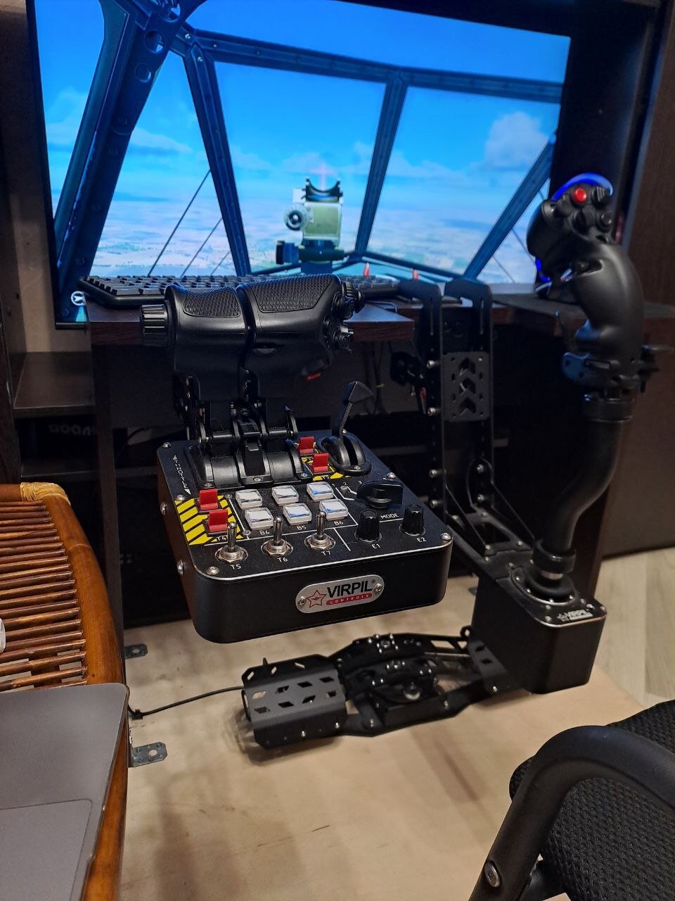 GVL Posted November 29, 2025 Posted November 29, 2025 I invite you to show off your "cozy nests" in which you conquer the virtual sky! I'll start with mine. A couple of months ago, I finally finished my cockpit, and I've now installed everything I planned. The seat is from a Volkswagen, and it folds and can be easily removed from the cockpit frame if needed. The cockpit frame is made of 40x40, 40x80, and 20x20 aluminum profiles. For easy movement from the "parked" to the "combat" position, I use four paired rollers with locks to prevent rotation and pivoting. The "stewardess" is in its place 🙂 With the seat back raised, it looks like this: The Cockpit frame is equipped with: - a joystick with force feedback (FFBeast) and a VirPil Flanker handle. - my old pedals upgraded to FFBeast! and added brake pads. - Throttle FFBeast! and an additional panel in the style of "Mustang". - Collective FFBeast! With a handle from VirPil. - Two "shakers," one located in front of the pedals, the other under the seat. Controlled by SimHaptic software. - The right side provides access to all power connections, a USB hub, and a shaker amplifier. I also access my seat through the right side. And this is what it looks like from the back. There are also two power supplies located under the seat. 20 Quote