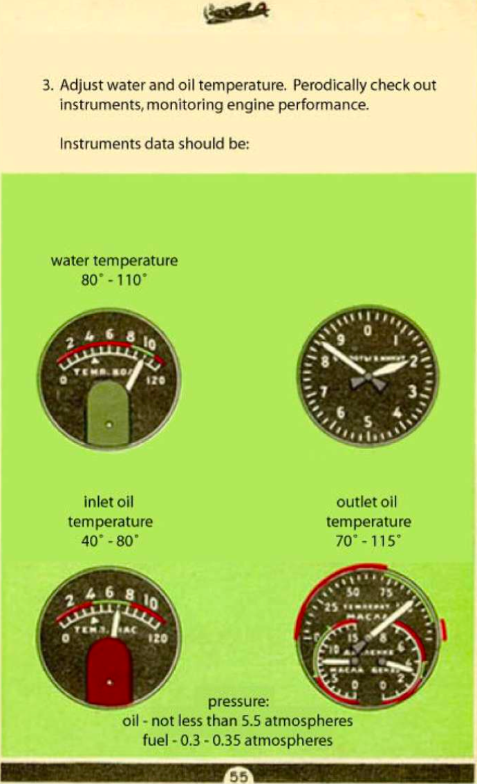 RavenSystem Posted February 11 Posted February 11 Hi, Would be possible to add an extra motor management line to Il-2 planes notes? Eco: -- 1850 950 Based on the attached manual page. Other thing: the line of the oil temperature in Il-2 planes notes should be: Oil in (M) 40-80 85 Based on in-game information and on the attached manual page. The "in" is because panel has measures for oil intake and oil output. And maybe an additional line with the oil output data: Oil out (M) 70-115 120 Thank you! Quote