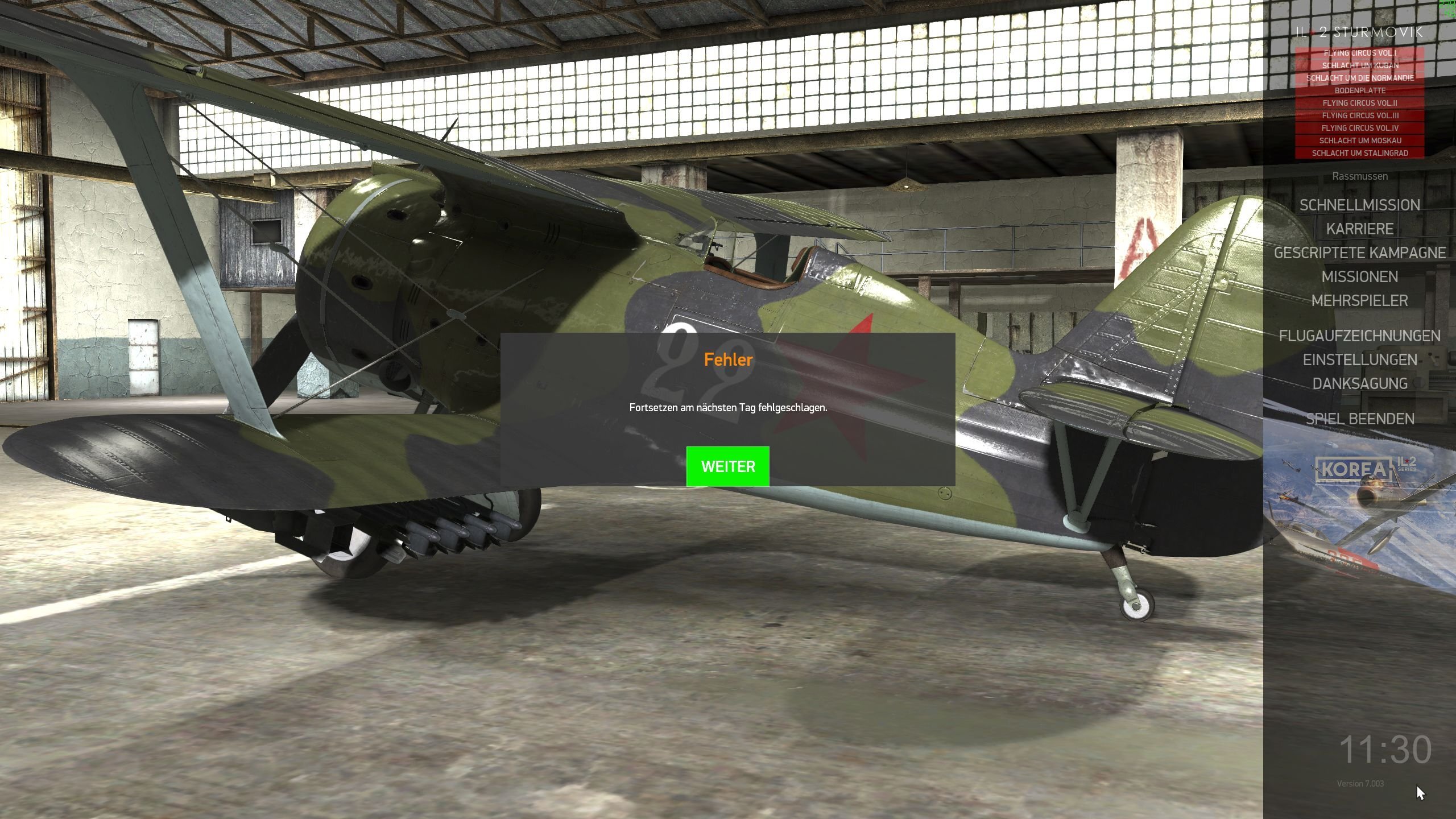 1C Game Studios LukeFF Posted April 3 Author 1C Game Studios Posted April 3 On 4/2/2026 at 5:43 AM, Juergen said: Hello I'm having the following problem in the Liberation of Odessa career mode: The career works perfectly until August 7, 1944, but as soon as I try to advance to the next day, no new missions load and I get the error message "Continue to next day failed." The campaign can no longer be continued. Is anyone else having this problem? On 4/2/2026 at 5:47 AM, Juergen said: Thanks, should be fixed in the next update.